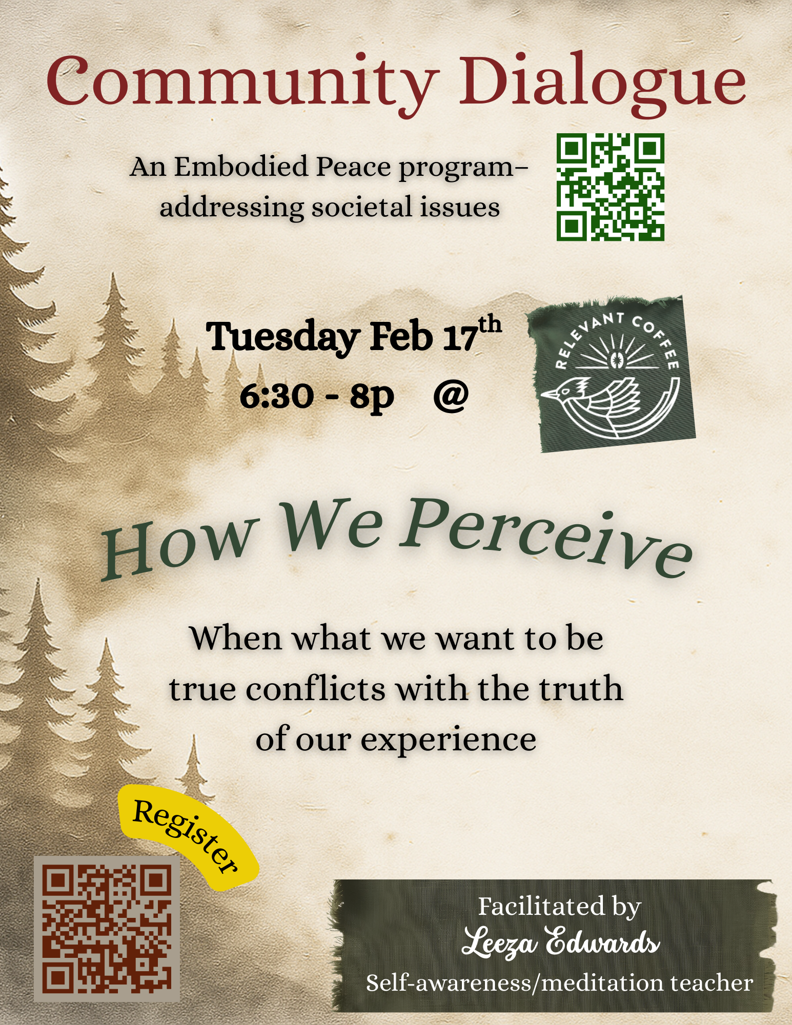 In a time when “alternative facts” can feel louder than shared reality, we’ll explore how perception forms—through attention, identity, fear, media, and belonging. Experimenting with a gentler pace of perception: naming our assumptions, softening the grip of certainty, and exploring what changes when we listen beyond positions and come back to what is true of our experience.